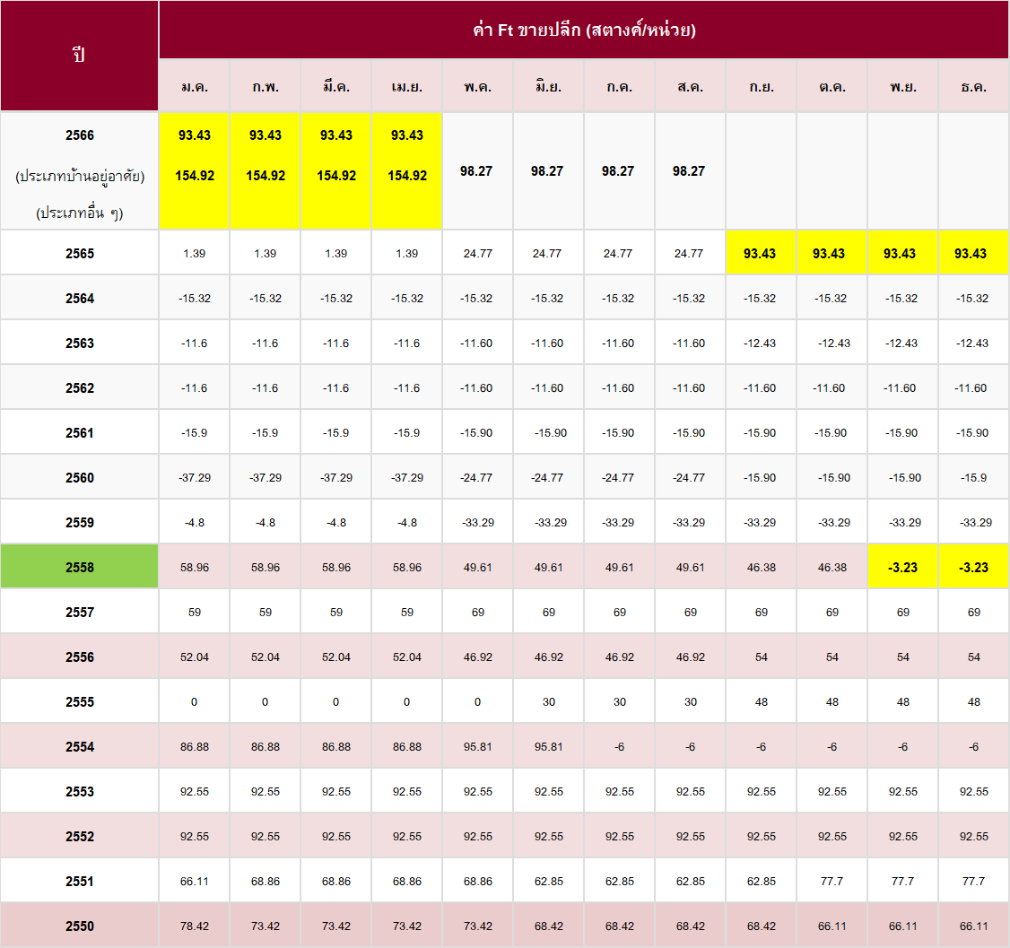 1.1 ผู้ใช้ไฟฟ้าประเภทที่ 1.1.1 ที่ใช้ไฟฟ้าไม่เกิน 50 หน่วย ติดต่อกัน 3 เดือน และผู้ใช้ไฟฟ้าที่ได้ลงทะเบียนเป็นผู้มีสิทธิสวัสดิการแห่งรัฐ ได้รับสิทธิค่าไฟฟ้าฟรีตั้งแต่เดือน พฤษภาคม 2566 เป็นต้นไป 1.2 มติคณะรัฐมนตรี มี.ค.2566 เสนอ กกต. ขอใช้งบประมาณในการช่วยค่าไฟฟ้าประชาชน 1.2.1 ใช้ไฟฟ้าไม่เกิน 150 kWh คิด Ft ที่ 1.39 สต. (คิดเป็น 56% ของครัวเรือนทั้งหมด) 1.2.2 ใช้ไฟฟ้า 151 - 300 kWh คิด Ft ที่ 26.39 สต. (คิดเป็น 22% ของครัวเรือนทั้งหมด) 1.2.3 ใช้ไฟฟ้า 301 - 500 kWh ให้ส่วนลดค่าไฟฟ้า 150 บาท - ทบทวนแผนพัฒนากำลังการผลิตไฟฟ้า (PDP : Power Development Plan) จากแผน PDP 2018 (2564-2573) เป็น PDP 2022 (2565-2580)