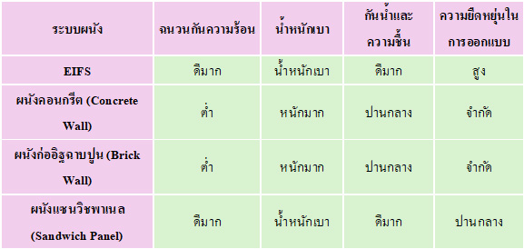 การเปรียบเทียบ EIFS กับระบบผนังแบบอื่น