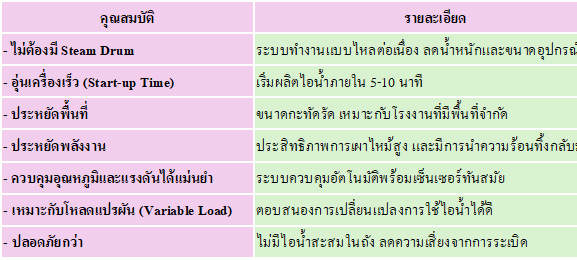 4. ไอน้ำถูกส่งออกจากระบบทันที โดยไม่ต้องเก็บในถังไอน้ำ